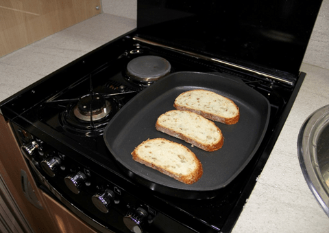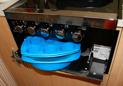 If your caravan has a grill, you know the challenge of fitting items like dishes and trays in your kitchen. No longer a problem! You can easily save storage space by keeping these items inside the grill itself.
