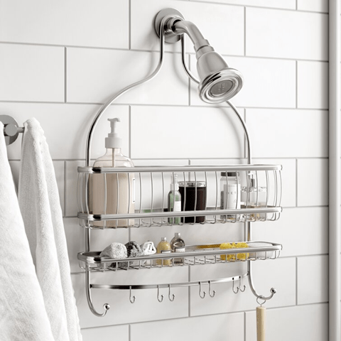 To save space in a small area such as the shower, consider making use of the wall as much as you can. An excellent way to do this is by using a shower wall hanging, which not only saves space but also enhances the appearance of your bathroom.