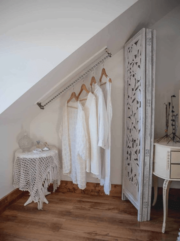 Indeed, a hanging rail provides a way to have twice as many hangers for clothes compared to a hanging bar. These rails are incredibly sturdy, making them suitable for hanging towels as well. They can be placed against the wall, which conserves space while allowing you to hang more items.