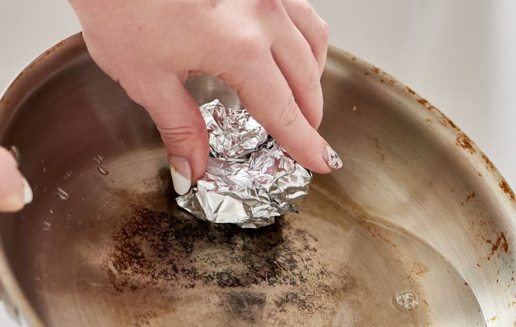 If you have burnt pots in your kitchen, it’s time to take care of them. With this trick, you can make them look like new again. The three essential items you’ll need are baking soda, foil, and hydrogen peroxide. First, sprinkle baking soda to completely cover the burnt area. Then spray a small amount of hydrogen peroxide. This will create a paste-like mixture on the pot. Let the paste sit for at least five to six hours. After that, come back to the kitchen with foil and scrub the pot. Be sure to wash it once its appearance is restored.