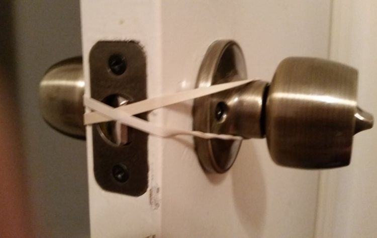 If you have doors in your home that close as soon as you release the handle, you’re likely familiar with the frustration it can cause. You have to repeatedly open it if you’re frequently moving in and out. For instance, imagine you’re moving furniture into your room, but the door shuts while you fetch each item. You would need to set everything down, open the door again, and pick everything up once more. To prevent this situation, simply loop an elastic band around the doorknobs. This will block the latch, keeping the door from closing.