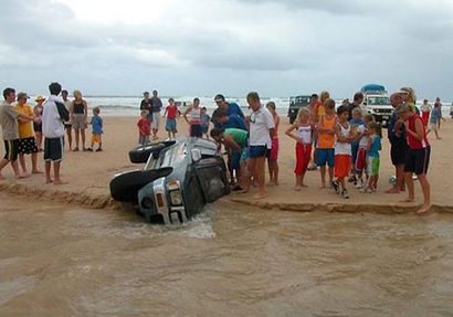 Sand Trap says today is just another normal day traveling along the sand highway. Always watch out for any “roads” that might be flooded. It’s unfortunate to encounter an incident like this on the sand road. Someone has captured it perfectly with a photo.
