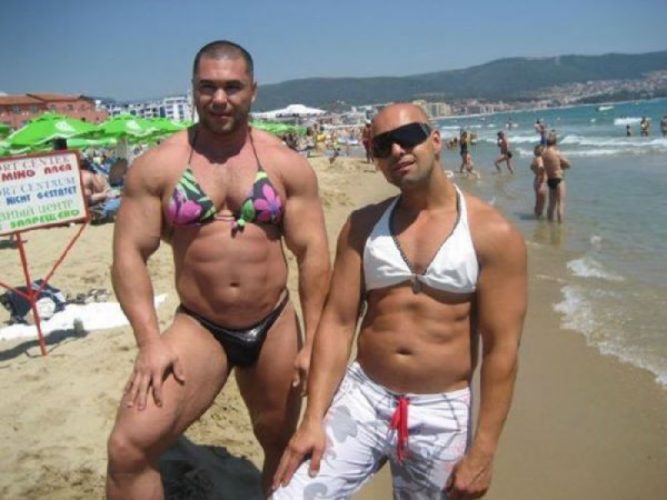 Muscular guys are often seen at the beach, so it’s not unusual to encounter them there. However, on this particular day, they wore something interesting that caught attention. If they did this, it might have been because they lost a bet, but if not, maybe they did it simply for humor. If the latter was true, then their statement was indeed fitting.