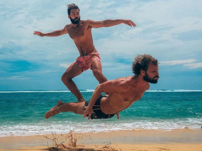 I have a feeling that they won’t be able to accomplish what they’ve planned, but I might be completely mistaken. Where else on the beach can you capture a photo of yourself surfing on your friend’s shoulders? I’d say it ended up being an adorable picture.