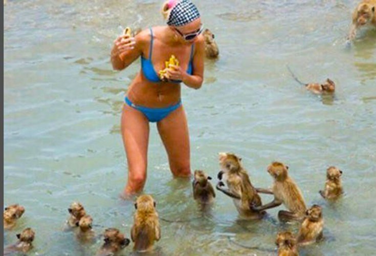 Many people believe that female chimpanzees are attracted to male chimpanzees, and vice versa. However, this picture suggests something unexpected. The chimpanzee is having fun surrounded by many females at once. If a chimpanzee can attract females in this way, perhaps there’s hope for me too. Should we investigate where this beach is exactly? Are you interested as well? Let’s try to find out together!