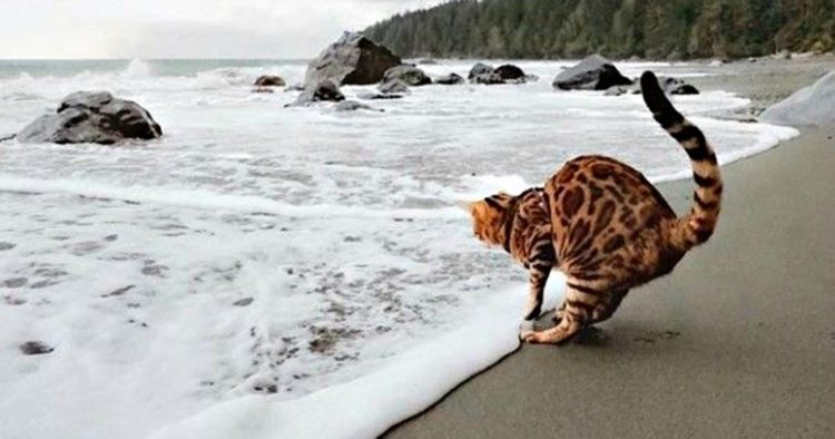 Who would have thought it was a good idea to bring a cat to the beach in the first place? The fun and excitement might start the moment you step into the water. This photo looks like it was taken in real life. The timing of the shot deserves praise. The photographer has successfully captured an amazingly fantastic pose.