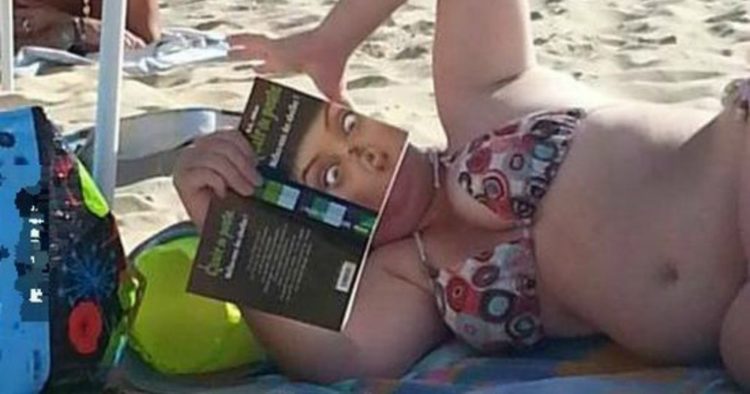 Do you like to bring a book or magazine to the beach to spend some time reading? Not everyone will say “Yes,” but having a good book at the beach is undeniably enjoyable. On the flip side, it’s not very common to see people reading at the beach. However, if you plan to go there alone, it’s highly recommended to bring an interesting book, just like that other woman has done. Look at the image; what a creative and fun way to make the front cover match your look!