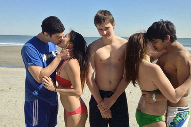 As you listen carefully, you can hear the somber tune playing in the background while this individual finds themselves caught between two content couples. One can only hope, fingers crossed, that this photo was taken in fun. Otherwise, this person’s life might be more disheartening than we initially imagined. The audience would also sympathize with this person. Hopefully, they will soon find a partner to join them at the beach.